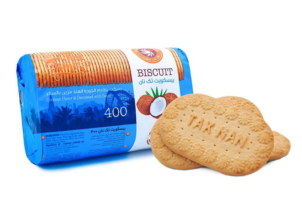 بیسکویت ۴۰۰ گرمی تک نان با طعم نارگیل و تزیین شکر